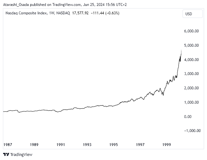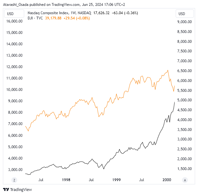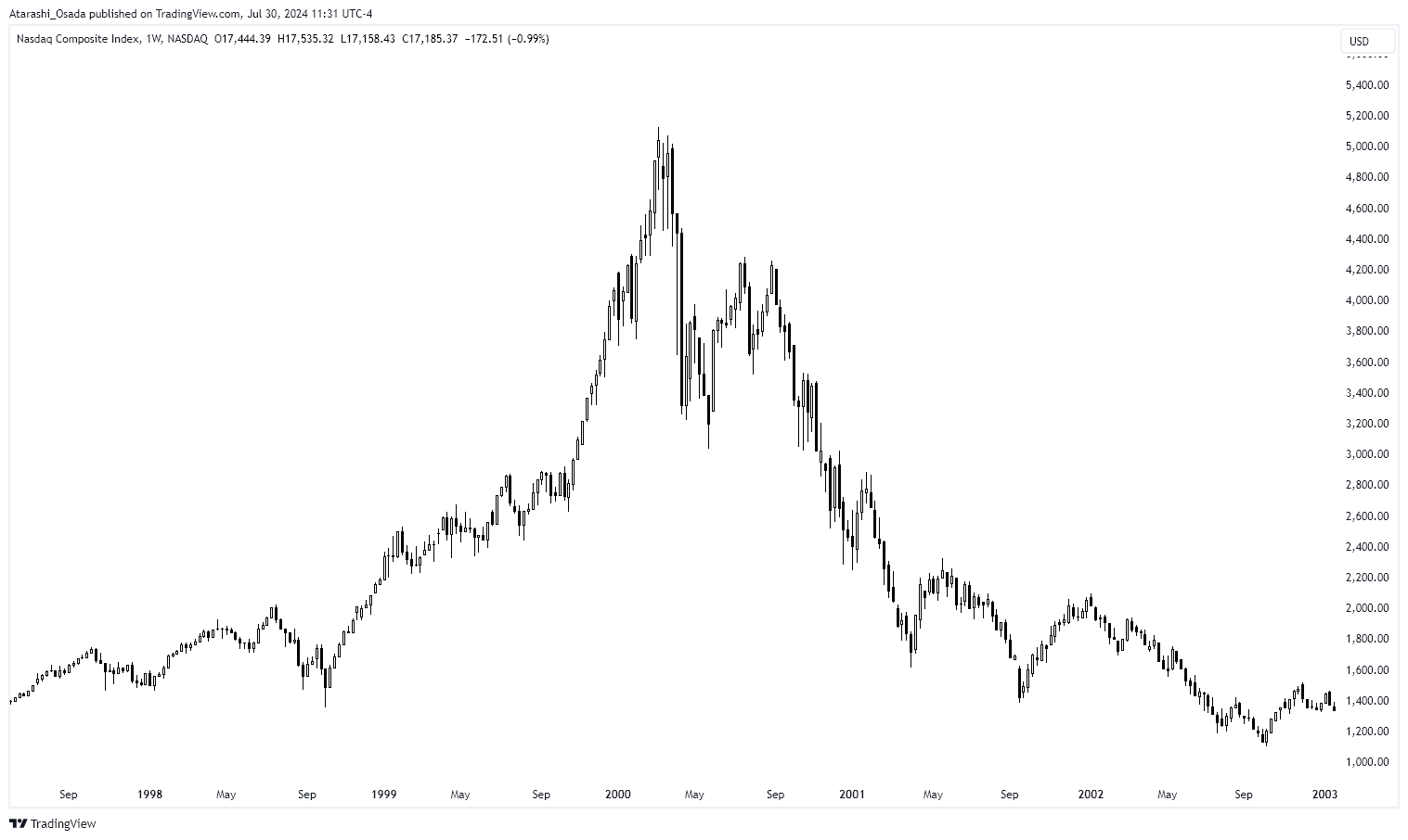➡️ Nasdaq slowly recovered from the 1998 crash (memo: -33% drawdown from top) and made a new high.