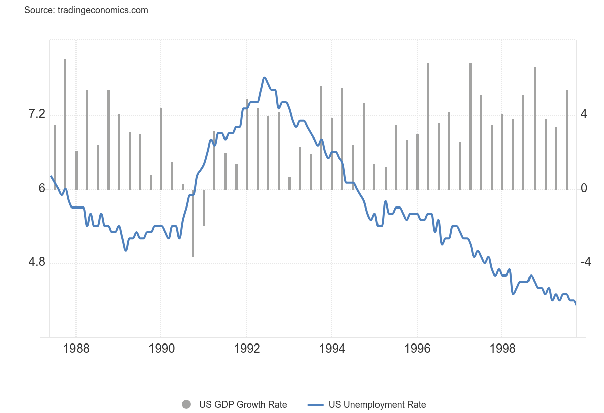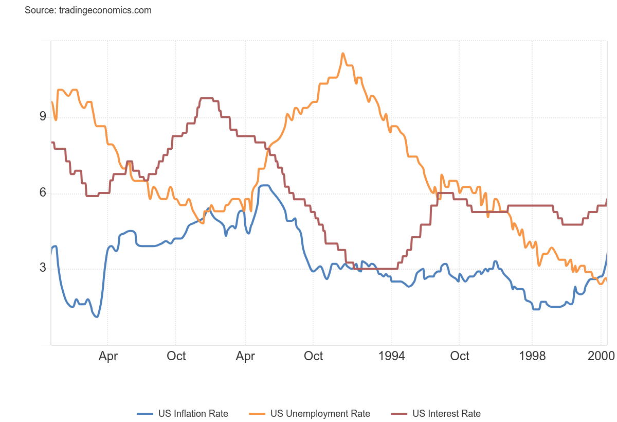 This, accompanied by favorable “easy money” (see below) and legal ground for speculation (Taxpayer Act of 1997, which reduced taxes on capital gains), built the terrain for the “2000 crash.”.