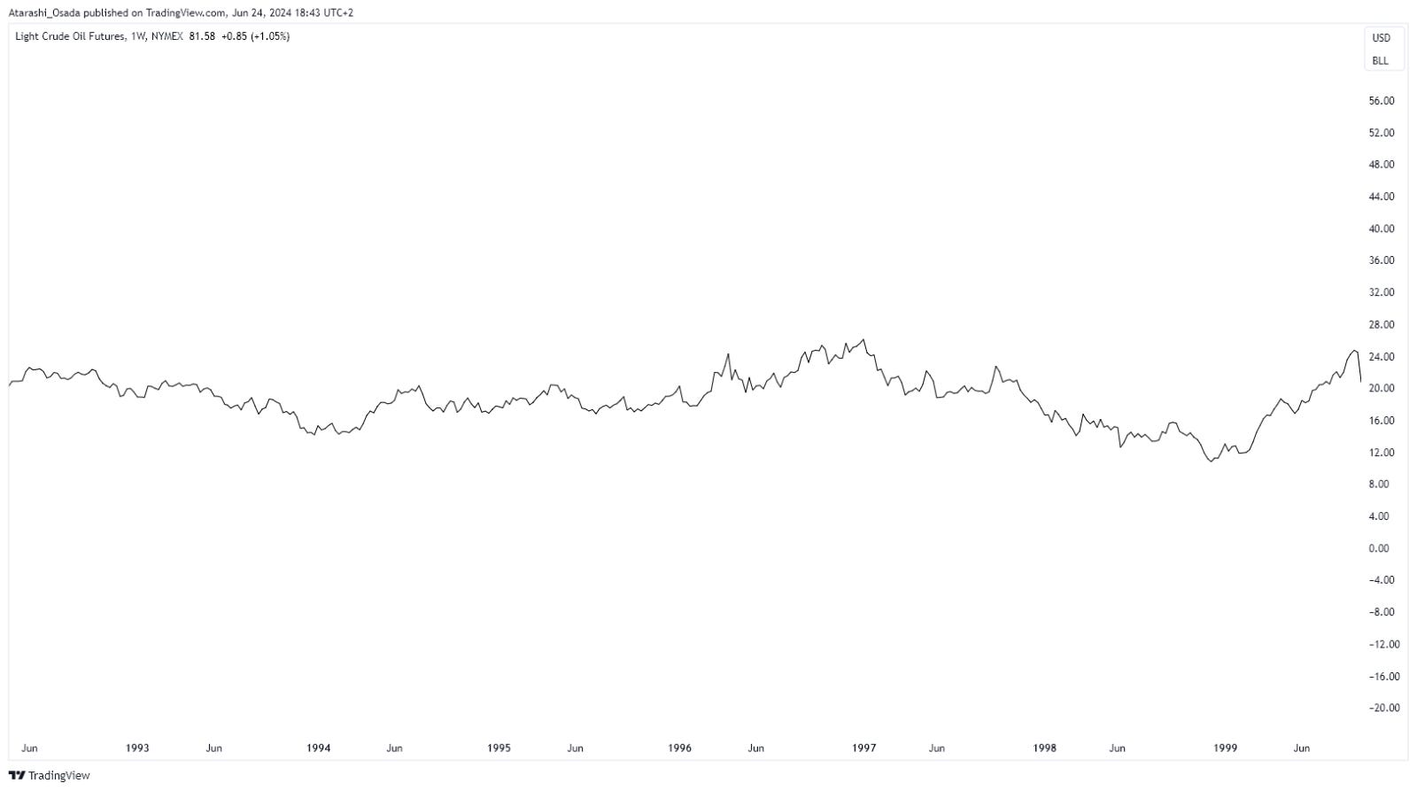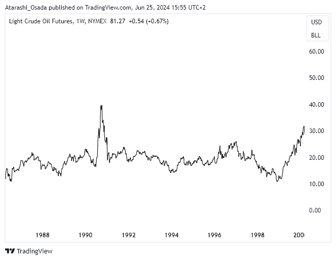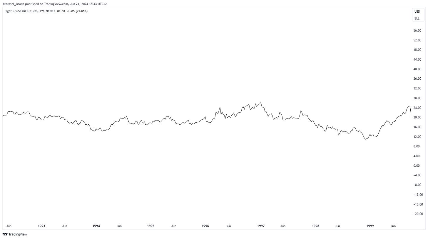 ➡️ Crude oil has been in an uptrend since the start of 1999 due to OPEC cuts and high demand (notably by the US economy performance).9