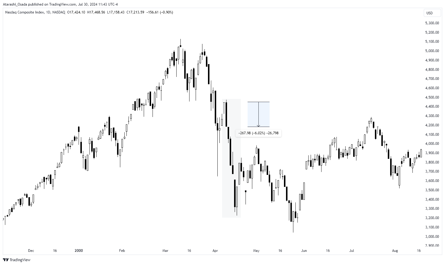 On March 13th, Nasdaq saw its first (huge) sell-off, notably due to Japan's recession fear and (maybe consequently) suspected taking profit behaviors.