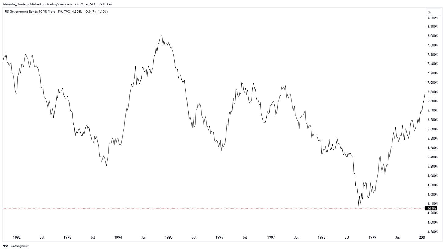 ➡️ Bond yields were also in an uptrend (10Y below).